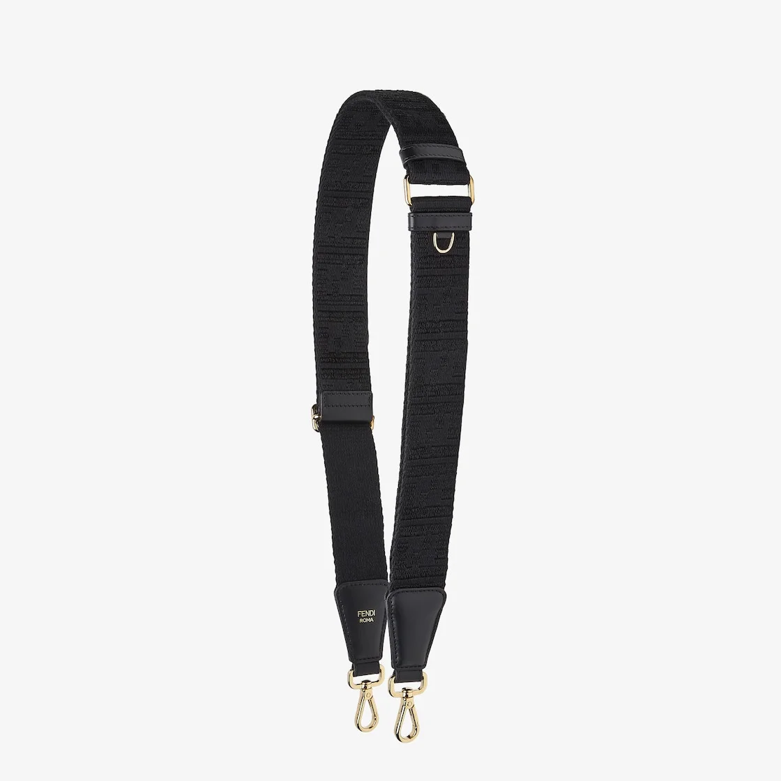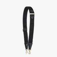 Long adjustable shoulder strap with double clip, to use in combination with any bag with hooks. Made of black webbing with matching tone FF jacquard motif. Black leather details. Gold-finish metalware. Made in Italy Composition: 98% polyester, 2% polyamide, 100% calfskin Product Code: 8AV386AJPEF0KUR