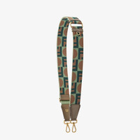 Long adjustable shoulder strap with double clip, to use in combination with any bag with hooks. Made of green jacquard webbing with Fendi Dots motif, a combination of the iconic FF and Art Deco-inspired dots in different colors. Finished with details in dove gray leather. Gold-finish metalware. Made in Italy Composition: 100% polyester, 100% calf leather Product Code: 8AV386AYISF1TVR