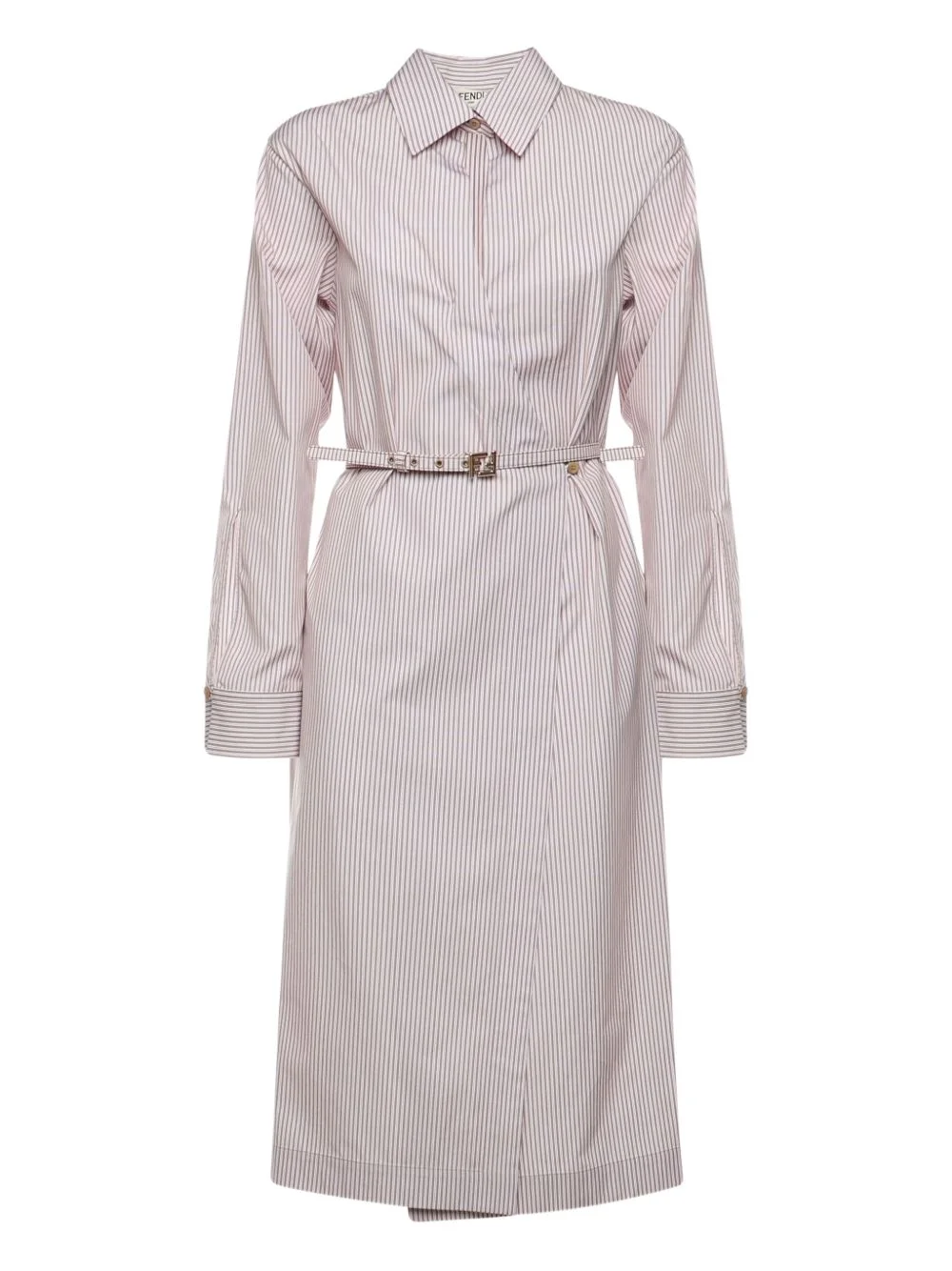 striped belted midi dress Highlights - Beige - Striped - Point collar - Long sleeves - Belt Made in Italy Composition Cotton 100% Washing instructions Read Manufacturer Guidelines
