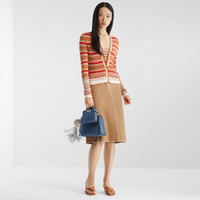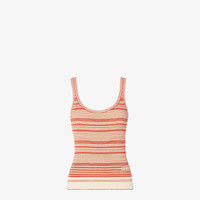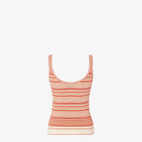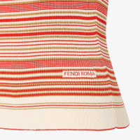 Sleeveless, bodycon top with scoop neckline. Made of silk and cotton yarn with a striped motif in red and beige. Embellished with a Fendi Roma logo intarsia on the hem. Made in Italy Composition: 100% silk, 55% silk, 45% cotton Size worn: 38 IT. The model is 180 cm tall Product Code: FZXD49AUZQF1SAZ