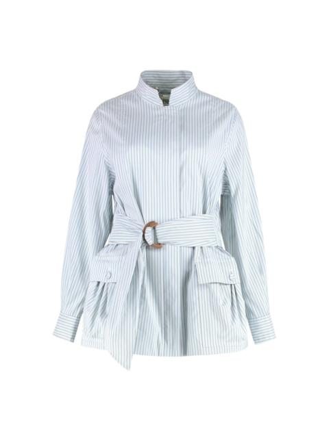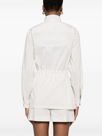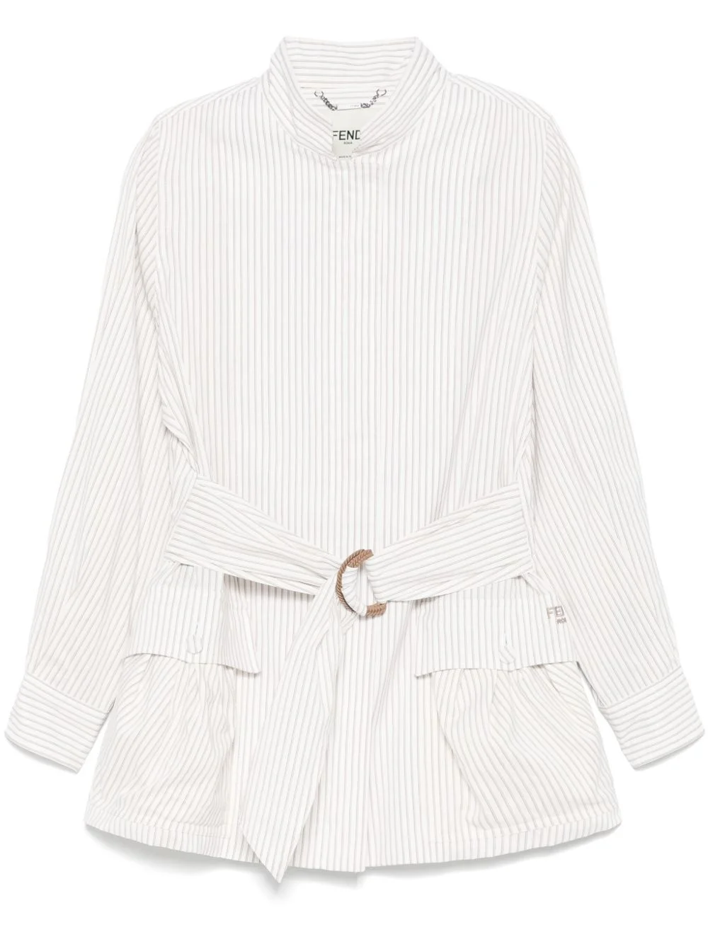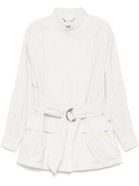 striped jacket Highlights - White - Concealed front zip fastening - Belted waist - Two front flap pockets - Buttoned-cuff sleeves Made in Italy Composition Cotton 77%, Silk 23% Washing instructions Dry Clean Only