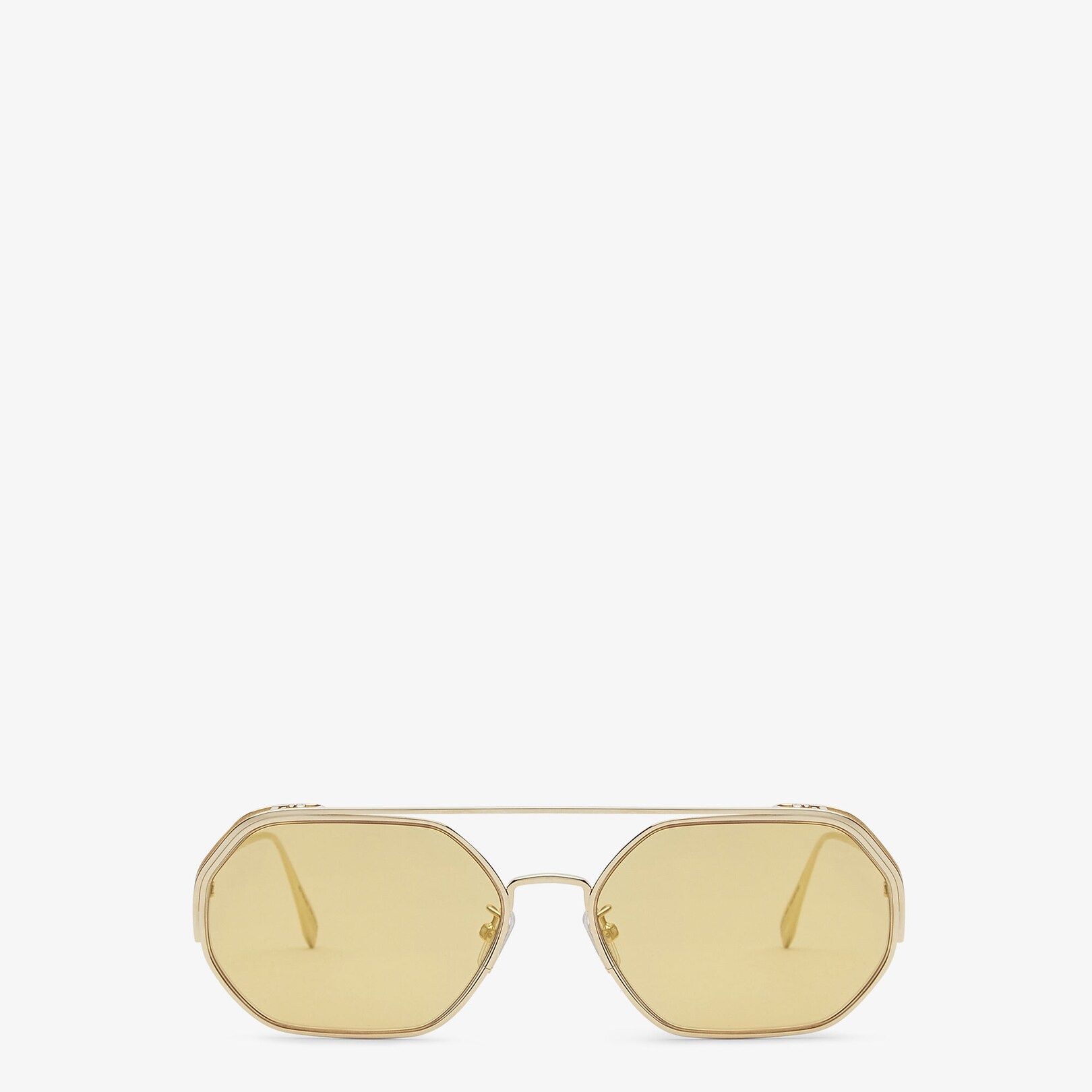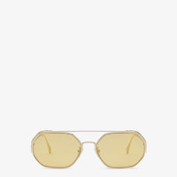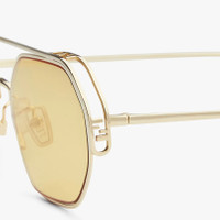 Hexagonal O’Lock glasses in gold-colored metal with FF logo on the edge of the front. Gold-mirrored lenses. Adjustable nose pads. Made in Italy Composition: 100%metal Product Code: FOL024V1TF09W8 Product Care: Wash your glasses every day with warm water and a pH-neutral soap: Do not use alcohol, aggressive chemical products or disinfectant wipes and do not dry them with paper or other cloths that could scratch them or leave streaks: Dry with a clean microfibre cloth: After use, always keep your glasses in their case
