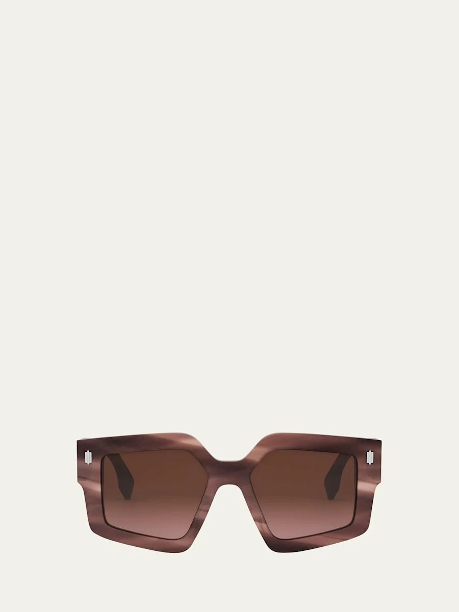 Fendi sunglasses in acetate Fendi Roma logo on temples and Pequin detail on front. Eye/bridge/temple (in mm): 45.1-18-145 Eyewear style: Square Acetate 100% UVA/UVB protection Made in Italy Proposition 65 warning for California residents Online Inquiries: BGS21_D552R| Store Inquiries: #4972644