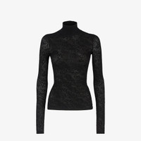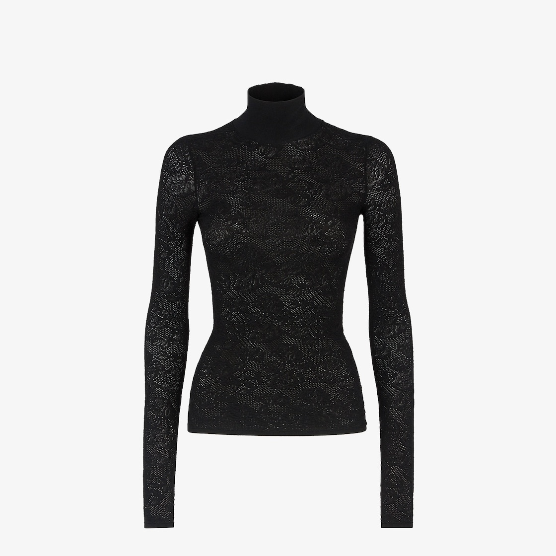 Figure-hugging jumper with a high collar and long sleeves. Made of a soft black technical viscose yarn with a lingerie-style floral motif embroidered all-over. Made in Italy Composition: 83% viscose, 17% elastane, 70% viscose, 30% metallic polyester Size worn: 38 IT. The model is 180 cm tall Product Code: FZXA37AQ40F0GME