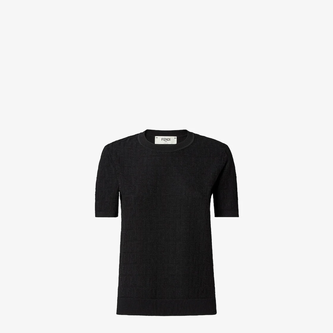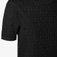 Short-sleeved crew-neck sweater. Made in a black cotton and viscose yarn with an all-over FF motif intarsia. Made in Italy Composition: 54% cotton, 46% viscose Product Code: FZXD57AUZRF0GME