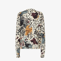 Regular fit sweater with crew neck and long sleeves. Made of white wool and cashmere yarn with the multicolored Falena motif printed all over. Finished with ribbed borders. Made in Italy Composition: 70% wool, 30% cashmere Product Code: FZXE25AYM4F047E