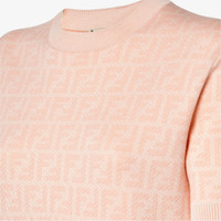Fitted short-sleeved crew-neck sweater. Made of a light pink wool and silk yarn jacquard with the iconic FF motif all over. Finished with ribbed edges. Made in Italy Composition: 100% wool Product Code: FZXE50AYM1F1UKC