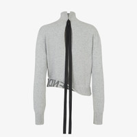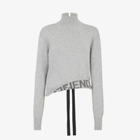 Slightly oversize sweater with high collar and long sleeves. Ribbed edges. Made of cashmere and wool yarn in gray mélange. The border is finished on the underside with the Fendi Mirror motif printed in a delicate contrasting shade. Made in Italy Composition: 70%fleecewool, 30%cashmere Size worn: 38 IT. The model is 176 cm tall Product Code: FZX934ANJJF0TAZ