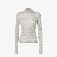 Long-sleeved streamlined high-neck sweater. Made of white stretch viscose jersey printed with the Peppered Falena motif in black. Embellished with a metal FF detail on the front left-side of the hem. Made in Italy Composition: 96% viscose, 4% elastane Product Code: FS9762AW8LF08QQ