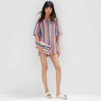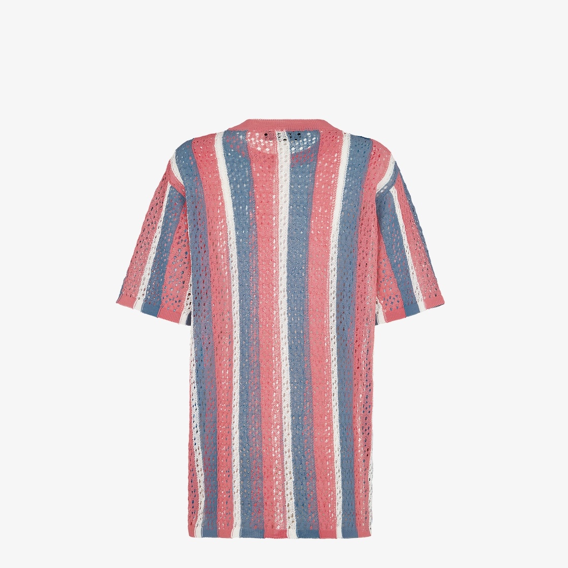 Short-sleeved crew-neck jumper. Made of a cotton crochet knit, with a pink, blue and white striped motif. Finished with a ribbed borders and contrasting FF logo intarsia. Made in Italy Composition: 65%cotton, 35%polyamide Model height: 177 cm Size worn: 38 IT Product Code: FZX999ANZFF1KE5