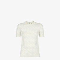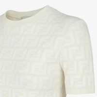 Short-sleeved crew-neck sweater. Made in a white viscose knit with an all-over FF motif intarsia. Made in Italy Composition: 63% viscose, 17% polyamide, 15% polyester, 5% elastane Size worn: 38 IT. The model is 179 cm tall Product Code: FZX999AQ41F1M2A