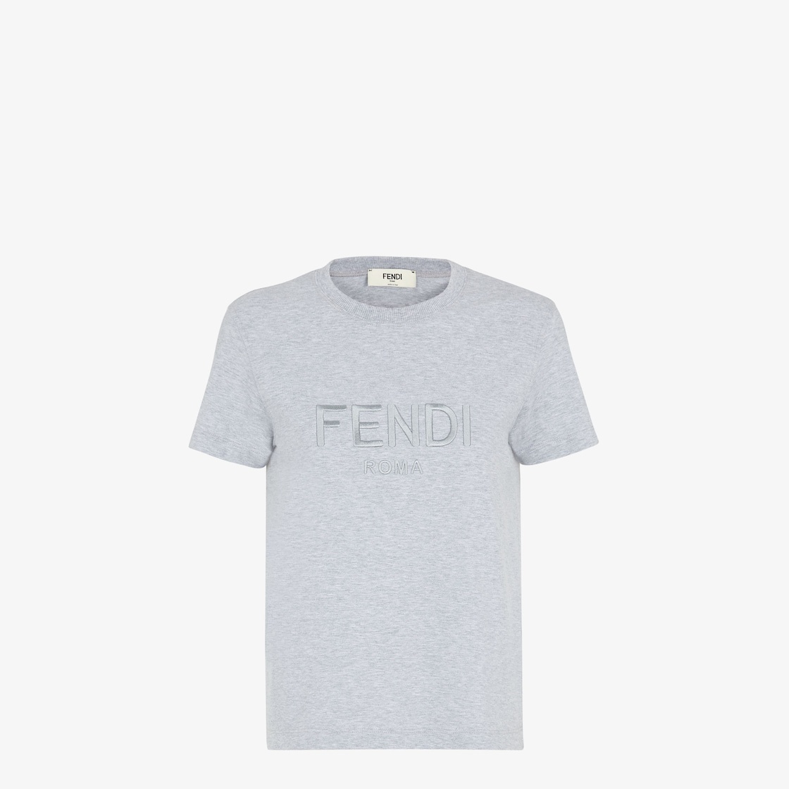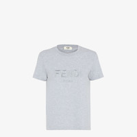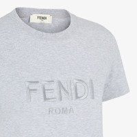 Regular-fit T-shirt with crew neck and short sleeves. Made of gray melange cotton jersey. Customized with tonal Fendi Roma lettering embroidered on the chest. Made in Italy Composition: 100% cotton Product Code: FS7254AT1PF0TAZ