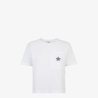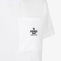 Short-sleeved, crew-neck, slightly cropped T-shirt. Made of white cotton jersey. Breast pocket embellished with a contrasting black Fendi Roma embroidered logo. Made in Italy Composition: 100% cotton Size worn: 38 IT. The model is 178 cm tall Product Code: FS9619ANQSF0ZNM