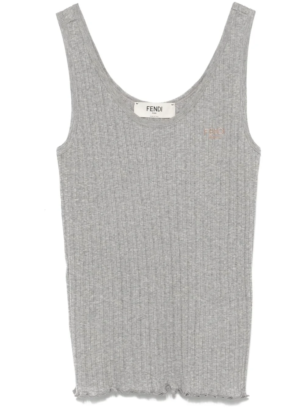 Fendi Roma tank top Highlights - Grey - Embroidered logo at the chest - Scoop neck - Sleeveless Made in Italy Composition Cotton 100% SIZE & FIT Model measurements Height 5 ft 10 in(1.77 m) Bust/Chest 32.28 in(82 cm) Hips 35.03 in(89 cm) Waist 25.19 in(64 cm) FittingInformation Designed for a slim fit that sits just away from the body offering a close yet comfortable fit Made with a midweight knit, this piece offers some stretch