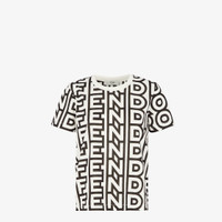 Regular-fit T-shirt with crew neck and short sleeves. Made of black and white cotton jersey. The Fendi Roma logo is reinterpreted by Marc Jacobs in an all-over and oversized style. Embellished with the exclusive Fendi Roma Marc Jacobs New York City label. Made in Italy Composition: : 100% cotton Model height: 177 cm Size worn: 38 IT Product Code: FS7254AMGVF1KCV