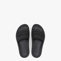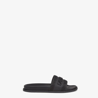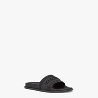 Wide-band flat slides made of embossed black rubber with the Fendace logo, a symbol of the collection born of the creative collaboration between Fendi and Versace. Made in Italy Composition: 100% Polyurethane Measurements: - Heel height: 5 mm Product Code: 8X8340AJYYF0ABB