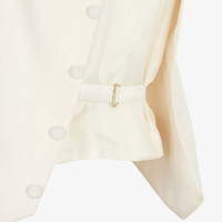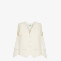 Deconstructed vest featuring cape-effect sleeves with cut-out details on the shoulders. V-neck with welt pockets. Button closure. Made of creamy white wool tricotine. Silk insert at the back with adjustable strap at the waist. Made in Italy Composition: 100% Fleece wool, lining: 100% Cupro Size worn: 38 IT. The model is 179 cm tall Product Code: FT5984AM3RF1M2A