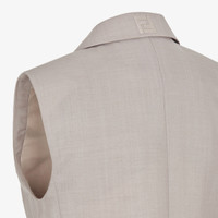 Tailored vest with peak lapels and welt breast pocket. Centre slit at the back. Unlined. Single-breasted fastening. Made of dove gray kid mohair. Embellished with matching embroidered FF detail on the back of the collar. Made in Italy Composition: 60% mohair, 40% wool, lining: 100% cupro, buttons: 100% mother of pearl Size worn: 38 IT. The model is 175 cm tall Product Code: FT5990S9AF0U6W