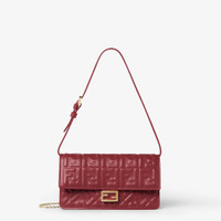Compact Baguette wallet with flap and FF clasp. Interior compartment with six card slots. Double shoulder strap, an adjustable leather option and a detachable thin chain option: to carry the bag like a clutch, under the arm or wear it cross-body. Made of soft, burgundy nappa leather with the iconic FF motif embossed for a three-dimensional effect. Gold-finish metalware. Made in Italy Composition: 100% lambskin, inside: 100% lambskin Product Code: 8M0498AAJDF0YPU