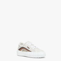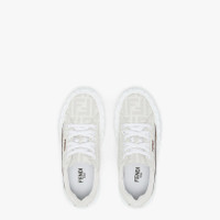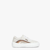 Fendi Force lace-up sneakers featuring a padded collar and high sole in branded rubber with an FF pattern engraved on the toe. Made of white and pearl gray fabric with FF motif. Embellished with multicolor leather inlay on the side. Made in Italy Composition: 58% Polyurethane, 24% Polyester, 18% Cotton, 100% PVC, 65% Polyamide, 35% Cotton, 100% Calfskin, inside: 100% Measurements: - Heel height: 20 mm Product Code: 8E8296AI1UF1H1P