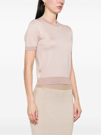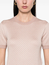 FF-jacquard top Highlights - Salmon pink - Ribbed cuffs and hem - Crew neck - Short sleeves Made in Italy Composition Silk 53%, Wool 42%, Polyamide 5% SIZE & FIT Model measurements Height 5 ft 9 in(1.76 m) Bust/Chest 32.28 in(82 cm) Hips 35.43 in(90 cm) Waist 25.19 in(64 cm) FittingInformation Designed for a slim fit that sits just away from the body offering a close yet comfortable fit Made with a lightweight knit, this piece offers some stretch