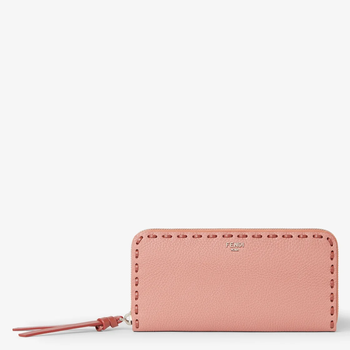 Large Peekaboo wallet with zipper fastening along three sides. Interior with two gusseted compartments, eight card slots and central zipped pocket. Made of powder pink Cuoio Romano leather and finished with hand-sewn tone-on-tone macro topstitches, an emblem of the iconic Selleria workmanship handed down through generations of Fendi artisans since 1925. Palladium-finish metalware and metal FENDI logo. Made in Italy Composition: 100% calf leather, inside: 50% cotton, 42% polyamide, 8% resins Product Code: 8M0517AURNF1TWR