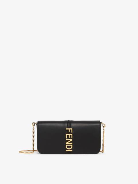 Compact Fendigraphy wallet with flap and metal Fendi lettering. Featuring an internal, removable pouch with eight card slots and zipper pocket. Thin, detachable chain shoulder strap. Made of brown FF jacquard fabric. Gold-finish metalware. Made in Italy Composition: 100% calf leather, interior: 100% calf leather, 63% cotton, 34% polyester, 3% acrylic Product Code: 8BS076AD23F1BA1