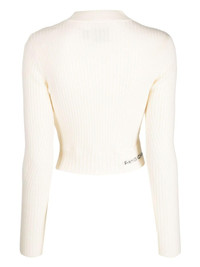 asymmetric ribbed-knit jumper Highlights - Cream white - Wool blend - Ribbed knit - Asymmetric design - Jacquard logo motif - Crew neck - Side button fastening - Long sleeves - Asymmetric hem Imported Composition Lambs Wool 94%, Polyamide 5%, Spandex/Elastane 1% Washing instructions Specialist Cleaning