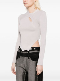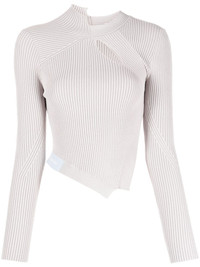 asymmetric ribbed-knit top Highlights - Grey - Ribbed knit - Asymmetric design - High neck - Keyhole neck - Long sleeves Imported Composition Viscose 64%, Polyamide 35%, Spandex/Elastane 1% SIZE & FIT Model measurements Height 5 ft 9 in(1.76 m) Bust/Chest 31.1 in(79 cm) Hips 35.03 in(89 cm) Waist 24.4 in(62 cm) Measurement SLEEVE LENGTH 23.22 in(59 cm) LENGTH 18.5 in(47 cm) BUST 26.77 in(68 cm) Shoulder Width 12.99 in(33 cm) FittingInformation Designed for a slim fit that sits just away from the body offering a close yet comfortable fit Made with a midweight knit, this piece offers some stretch This piece fits true to size – take your usual size Washing instructions Dry Clean Only