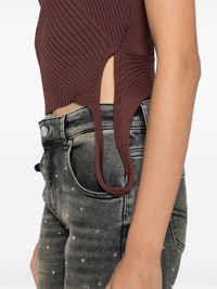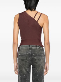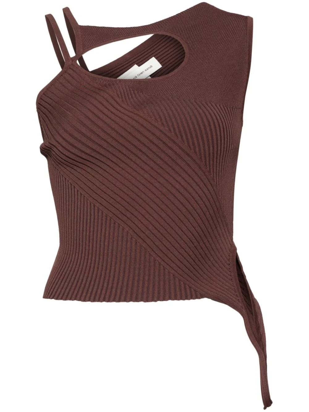 cut-out knitted top Highlights - Chestnut brown - Knitted construction - Asymmetric neck - Double-strap design - Cut-out detailing - Strap detailing - Multi-way stripe pattern - Asymmetric hem - Sleeveless Imported Composition Viscose 58%, Polyamide 42% SIZE & FIT Model measurements Height 5 ft 10 in(1.77 m) Bust/Chest 31.49 in(80 cm) Hips 35.43 in(90 cm) Waist 25.19 in(64 cm) FittingInformation Designed for a close fit throughout Made with a midweight knit, this piece offers some stretch This piece fits close in all sizes – take your usual size