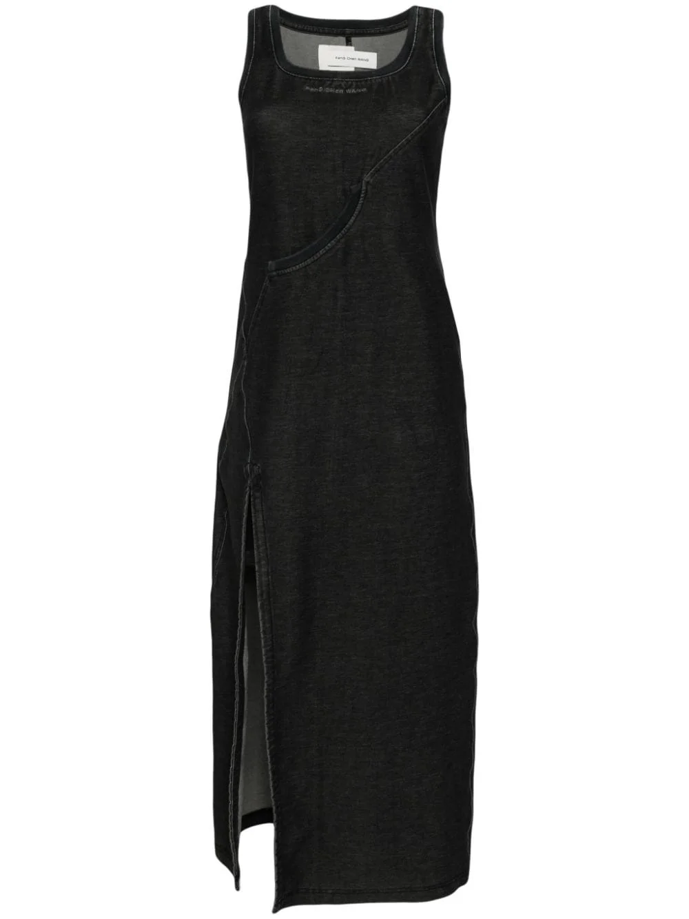 sleeveless denim maxi dress Highlights - Charcoal grey - Denim - Dark wash - Contrast stitching - Embroidered logo to the front - Square neck - Sleeveless - Side slit - Straight hem - Long length Imported Composition Polyester 52%, Cotton 40%, Spandex/Elastane 8%