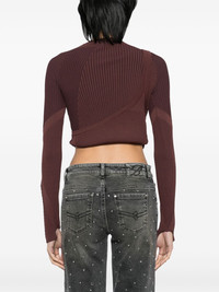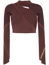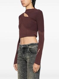 slash-neck knitted top Highlights - Chestnut brown - Knitted construction - Slash neck - Cut-out detailing - Multi-way stripe pattern - Strap detailing - Asymmetric hem - Logo knitted at the sleeve - Long sleeves Imported Composition Viscose 58%, Polyamide 42% SIZE & FIT Model measurements Height 5 ft 10 in(1.77 m) Bust/Chest 31.49 in(80 cm) Hips 35.43 in(90 cm) Waist 25.19 in(64 cm) FittingInformation Designed for a close fit throughout Made with a midweight knit, this piece offers some stretch This piece fits close in all sizes – take your usual size
