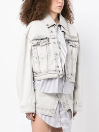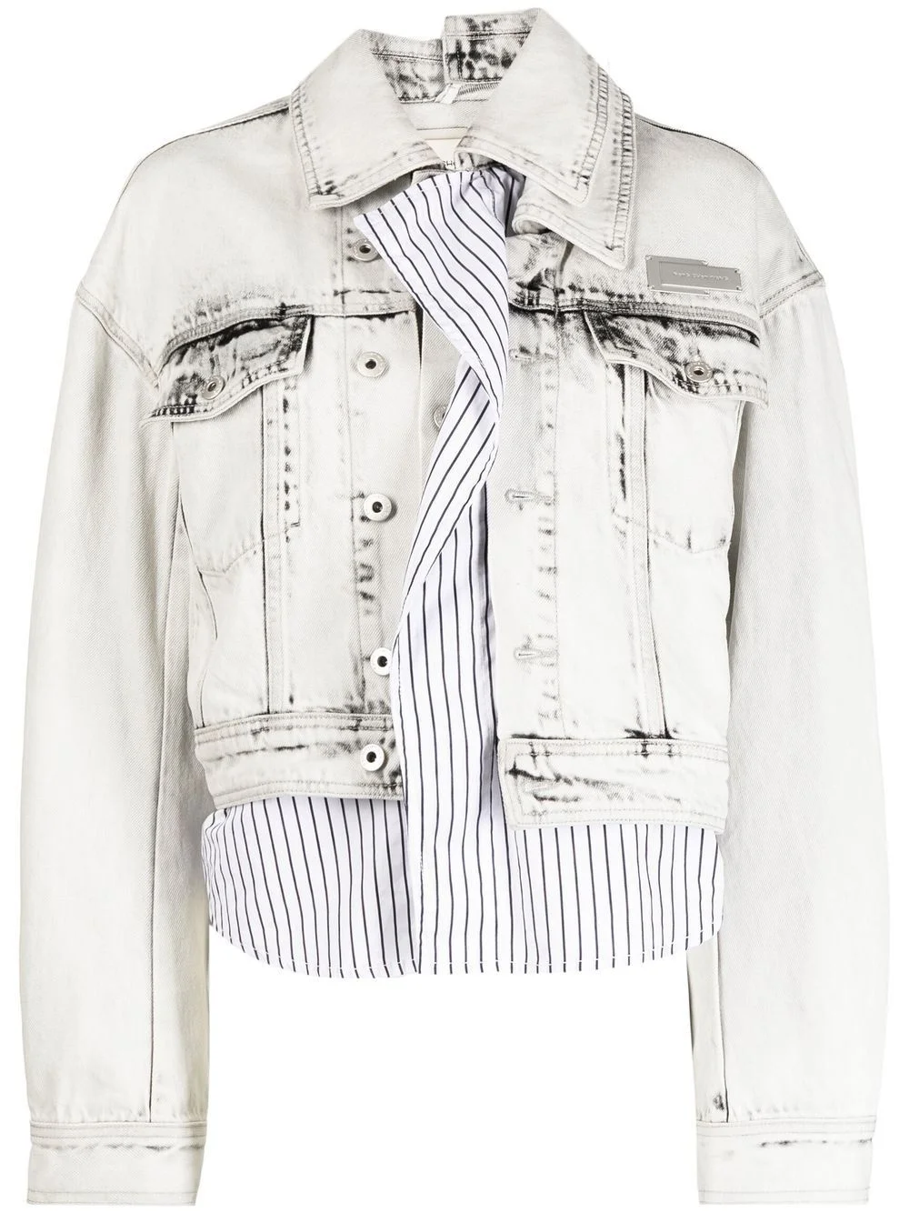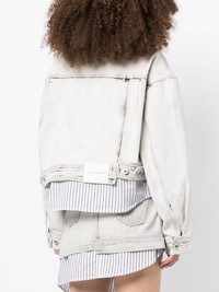 logo-patch denim jacket cloud white/light grey cotton vertical stripe print bleached effect logo patch to the rear classic collar front button fastening long sleeves two chest flap pockets curved hem Imported Composition Cotton 100% SIZE & FIT Model measurements Height 5 ft 10 in(1.78 m) Bust/Chest 33.46 in(85 cm) Hips 35.43 in(90 cm) Waist 24.4 in(62 cm) FittingInformation This piece fits true to size. We recommend you get your regular size Cut for a loose fit Made with a mid-weight non-stretch fabric Washing instructions Hand Wash