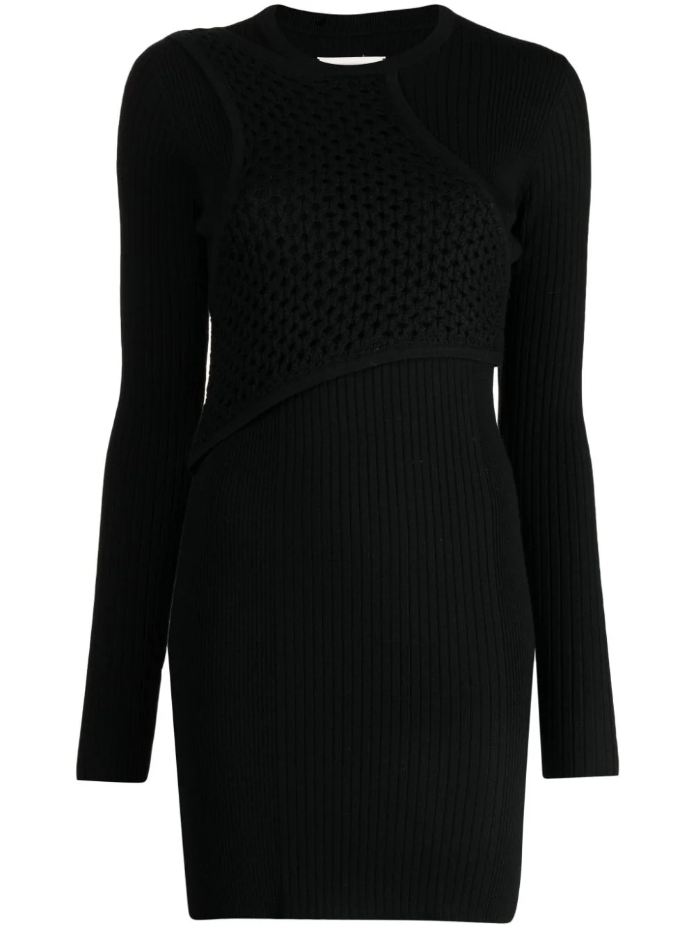 long-sleeve wool minidress Highlights - Black - Wool blend - Stretch-design - Ribbed knit - Crochet knit - Round neck - Long sleeves - Thigh-length - Straight hem Imported Composition Wool 89%, Polyamide 10%, Spandex/Elastane 1% Washing instructions Dry Clean Only
