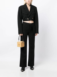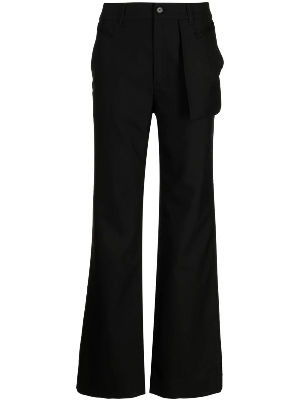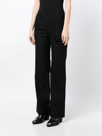 mid-rise button-fastening flared trousers Highlights - Black - Wool - Mid-rise - Belt loops - Front button fastening - Two front jetted pockets - Two rear jetted pockets - Flared design Imported Composition Lining: Polyester 52%, Viscose 48% Outer: Wool 100% SIZE & FIT Model measurements Height 5 ft 9 in(1.76 m) Bust/Chest 31.1 in(79 cm) Hips 35.03 in(89 cm) Waist 24.4 in(62 cm) FittingInformation Designed for a straight-leg fit, these trousers allow for a close fit at the waist and an unrestricted, comfortable fit over the leg Made from a midweight non-stretch fabric This piece fits true to size – take your usual size Washing instructions Dry Clean Only