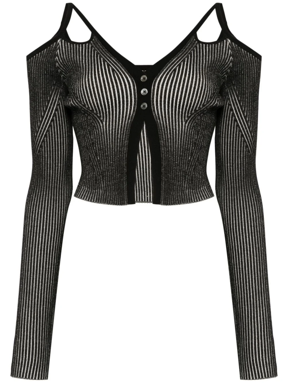 cut-out cardigan Highlights - Black - Knitted construction - Front button fastening - Cut-out detailing - Double-strap design - Long sleeves Imported Composition Viscose 74%, Polyester 26% SIZE & FIT Model measurements Height 5 ft 10 in(1.77 m) Bust/Chest 31.49 in(80 cm) Hips 35.43 in(90 cm) Waist 25.19 in(64 cm) FittingInformation Designed for a close fit throughout Made with a midweight knit, this piece offers some stretch This piece fits close in all sizes – take your usual size