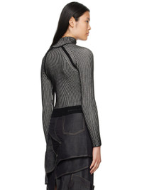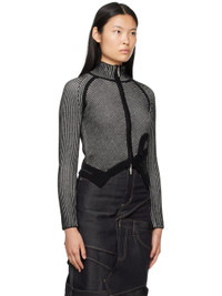 Rib knit acrylic- and wool-blend jacket. · Funnel neck · Zip closure · Crewneck-style accent at front · Jacquard logo at side seam · Raglan sleeves Supplier color: Black
