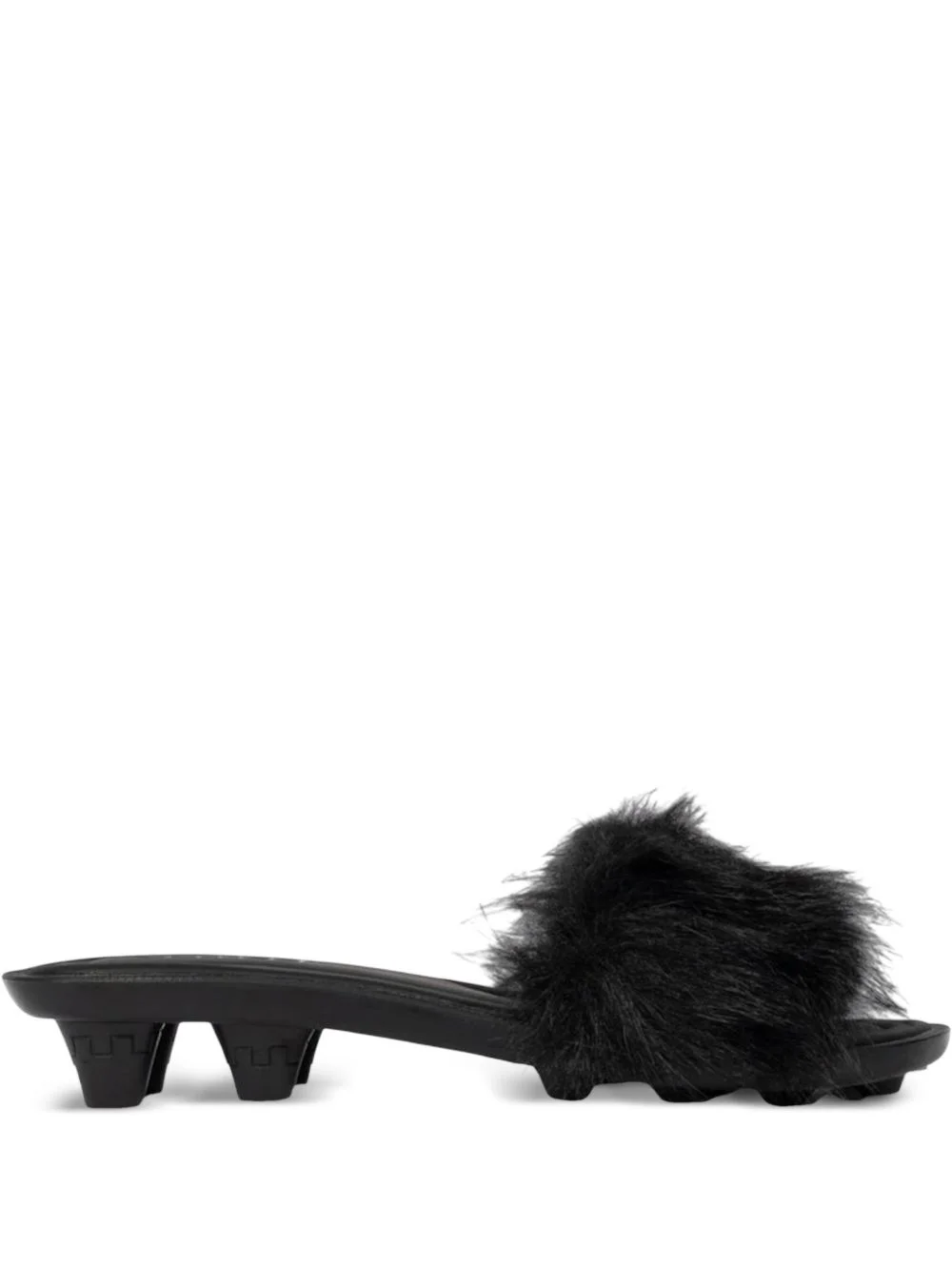 logo-embroidered sandals Highlights - Black - Faux-fur detail - Slip-on style - Logo embroidered Imported Composition Outer: PVC 100% Lining: Calf Leather 100% Sole: Rubber 100%