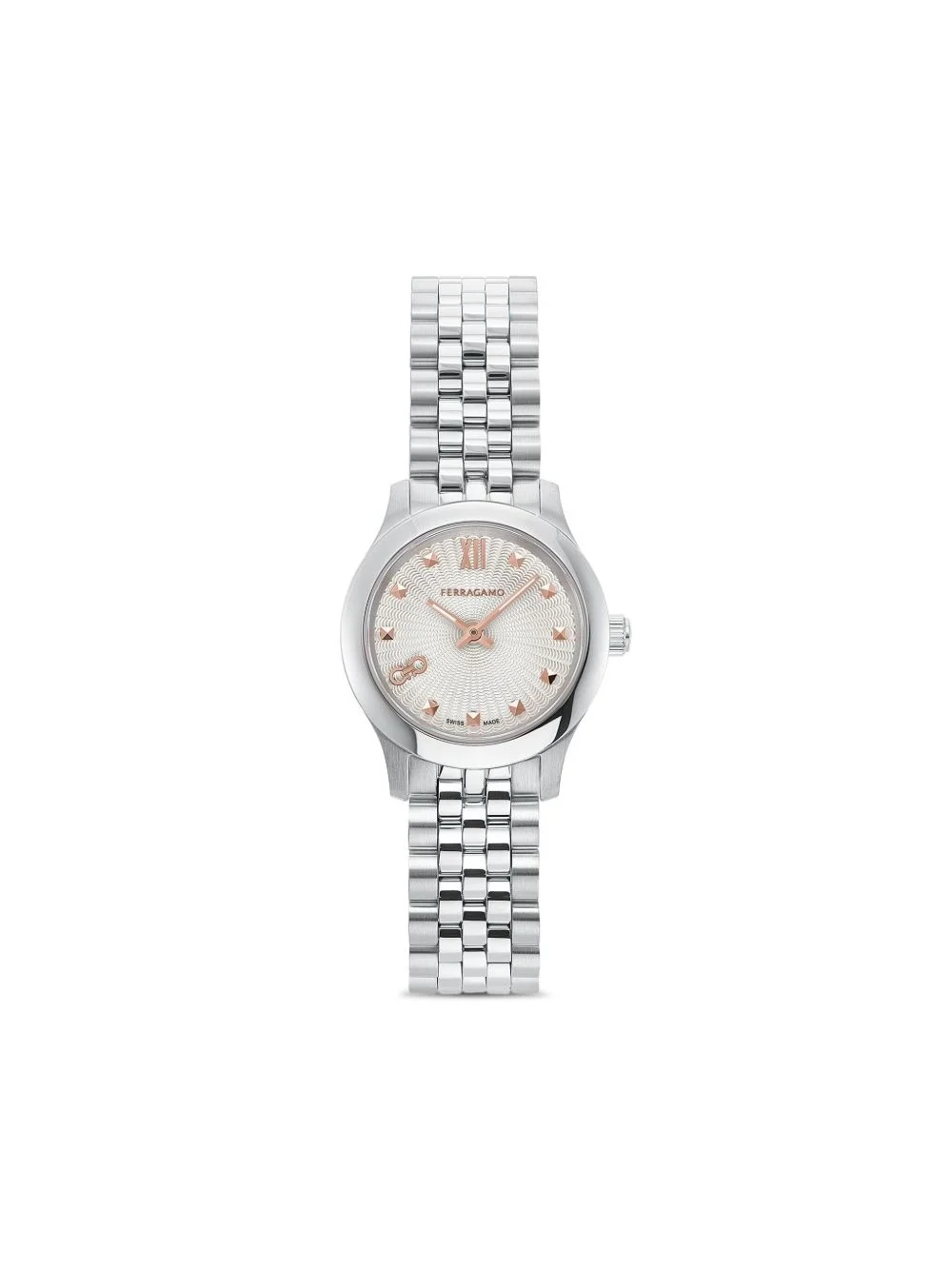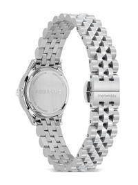 Ragamo Duo 25mm Highlights - White - 25mm - Stainless steel - Round face - Geometric dial - Baton hands - Gancini plaque - Quartz movement - Screw-down crown - Adjustable link bracelet - Folding clasp - This item comes with a standard one-year warranty from the boutique. Imported SIZE & FIT Measurement CIRCUMFERENCE 0.98 in(2.5 cm)