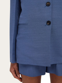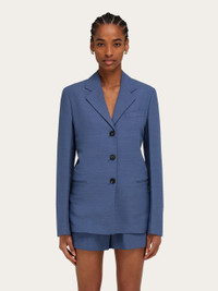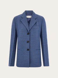 Contemporary iteration of the single breasted blazer in a high-end key. Made of wool faille with a fine horizontal fleck, the delicate yet stiff fabric has an impeccable drape. Signature diagonal eyelets add a custom touch to the three buttons along the front. Pressed pleats run the length of the sleeves, and strategic darts shape the waist of this lined garment. - Composition: 73% viscose, 27% pure virgin wool - Model measurements: Height 5' 9"/175 cm; Bust 30"/76 cm; Waist 24"/61 cm; Hips 34½"/87 cm - Model wearing: 38/XS - Made in ITALY - Product code: 13H323 785324