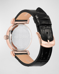 36mm Ferragamo Allure Watch with Calf Leather Strap, Black