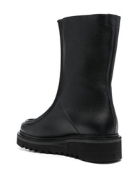 50mm zip-front leather boots jet black calf leather Gancini plaque front zip fastening round toe chunky rubber sole 50mm mid heel Made in Italy Composition Leather 100%