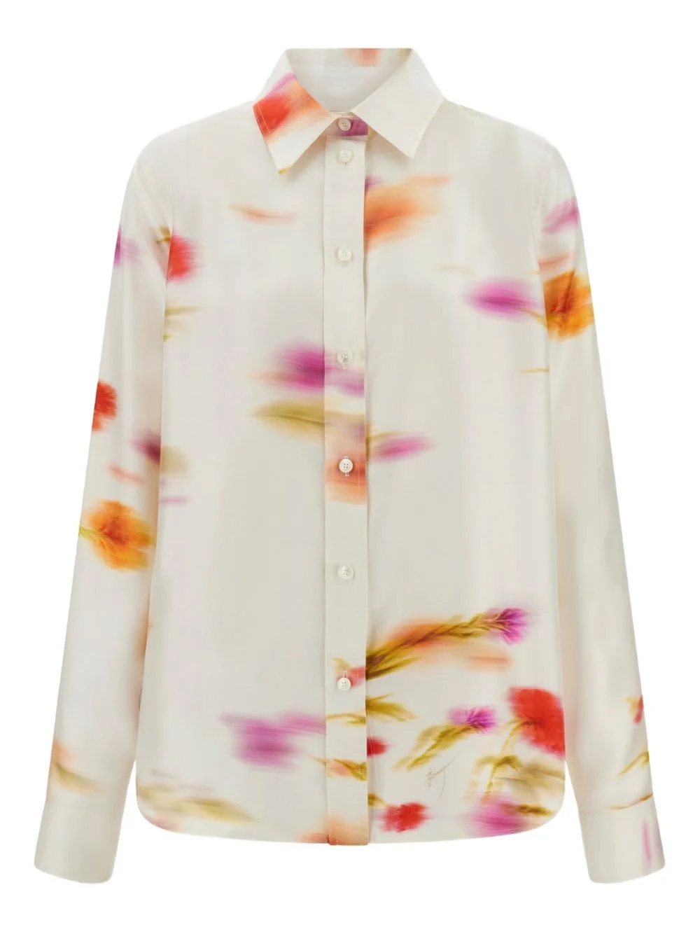 Blossom-print long-sleeve shirt Highlights - White - Front button fastening - Classic collar - Buttoned-cuff sleeves - Box-pleat detail Made in Italy Composition Silk 100%