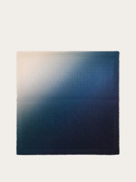 A wide, soft and super-warm alpaca-blend scarf decorated with matching shades along the length. Voluminous for a bold effect, it is complemented by fringes at the ends and a leather tag with embossed Gancini detail. - length 86.6 IN width 17.7 IN - Composition: 80% alpaca and 20% polyamide - Made in ITALY - Product code: 320956 779393