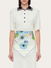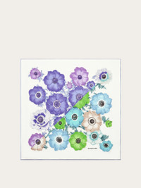 The Anemone print, a floral archive pattern, is introduced with new proportions and a play of contrasting colors for a romantically hearted motif. The result is a versatile scarf, radiant in its shades, and contemporary in its contrasting color treatment. - length 35.4 IN width 35.4 IN - Composition: 100% silk - Made in ITALY - Product code: 310175 775434