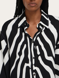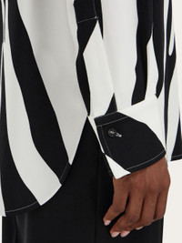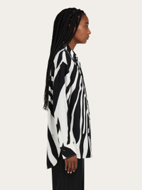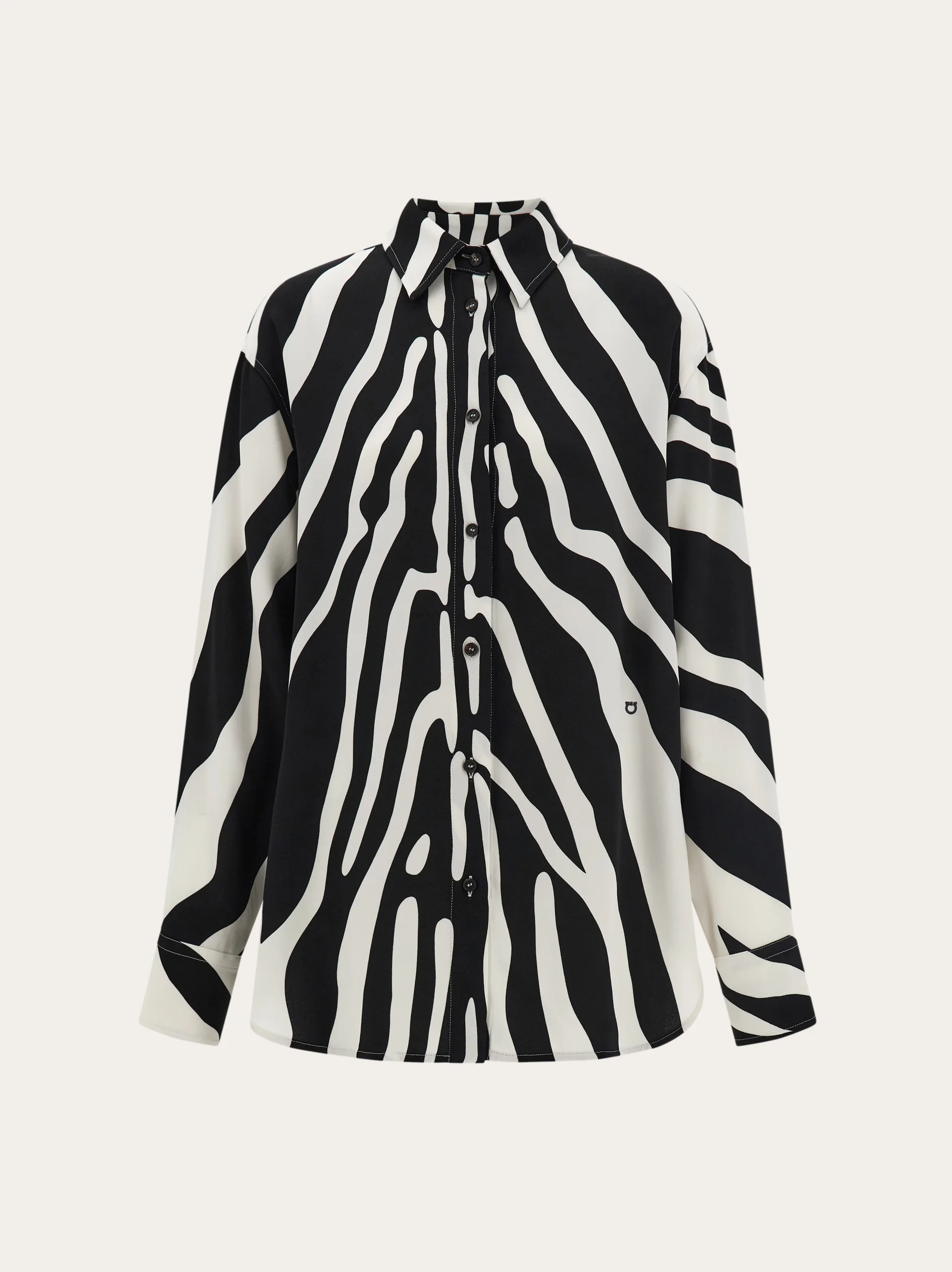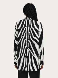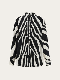 Inspired by a portrait by photographer Karen Knorr, the new interpretation of the zebra print is emblazoned all over this long sleeved shirt made of pure silk. The slightly oversize cut features a dropped shoulder and longer length at the back. - Composition: 100% silk - Made in ITALY - Product code: 13I027 790950