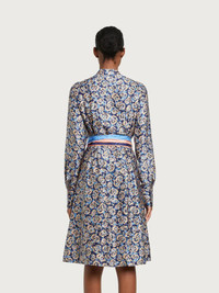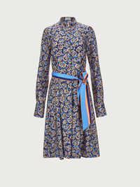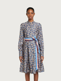 Lunch with the girls or a little trip into town? This pure silk A-line dress is versatile and simply gorgeous! Truly Ferragamo, the pattern features this seasons animalier S print, an animal print motif starring the Gancio S. The clean cut is punctuated by a Gancio S button at the center of the crew neck, with a hidden placket and buttoned cuffs. Cinch the waist with the removable silk sash in block colors. Model measurements: Height 5' 10"/178 cm; Bust 31½"/80 cm; Waist 23½"/60 cm, Hips 35"/89 cm - Composition: 100% silk - Made In ITALY