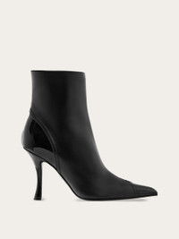 It's all in the details. Contrasting textures peep through at the tip and heel of this sleek ankle boot in a zip-open effect that reveals the Ferragamo prowess in leather processing. The look is uptown sensual, echoed by the slim heel with a slight curve, while the zip inside the ankle ensures a glove-like fit. - Composition: smooth and patent calfskin - Made in ITALY - Product code: 01J837 781732