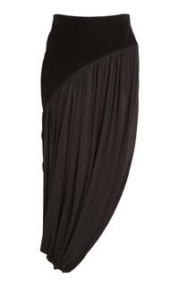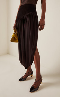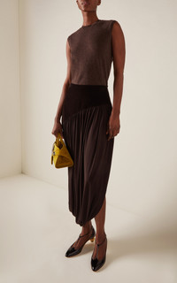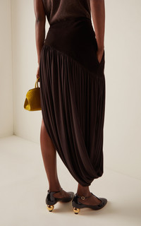 The epitome of everyday luxury, Ferragamo was founded in 1927 by legendary designer Salvatore Ferragamo, known as the "shoemaker to the stars." Under the design direction of Maximilian Davis, today the Florentine house pays homage to the founder's legacy by fusing enduring Italian craftsmanship and contemporary design — with environmental sustainability at its core. To achieve this hybrid silhouette, Ferragamo tailors this skirt with a fitted waistline – made from corduroy – and a draped panel made with stretch-jersey that falls and gathers to one side. For a tonal look, style with a coordinating tank or bodysuit. PRODUCT DETAILS - Pre-Fall ‘25 - Concealed zip fastening - Composition: 98% cotton, 2% elastane - Dry clean - Designer Color: Dark Expresso - Made in Italy