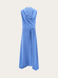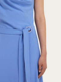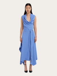 Intrinsically feminine, the timeless appeal of this dress is a masterful combination of strategic drapery and meticulously curated fabric. Satin side panels contrast with the cady viscose body and the cowl neckline softens the silhouette, cinched at the waist via a tonal sash that slides through a leather trimmed Gancio eyelet. The handkerchief hem enhances the voluptuous folds. - Composition: 97% viscose, 3% elastane - Made in ITALY - Product code: 13H315 788398